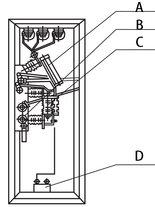 ![]() | Figure 3 A: Fuse (isolation knife gate) B: Bullet control mechanism C: Load switch D: Current transformer |
